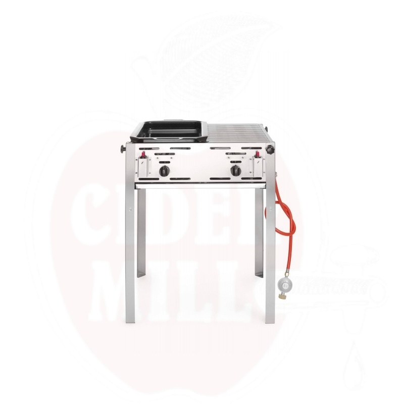 Stichworte: Grillplatte, Edelstahl, emaillierte Bratplatte, piezoelektrische Zündung, Gasgrill, Zwei-Zonen-Grill, Grillfläche, professionelles Grillgerät