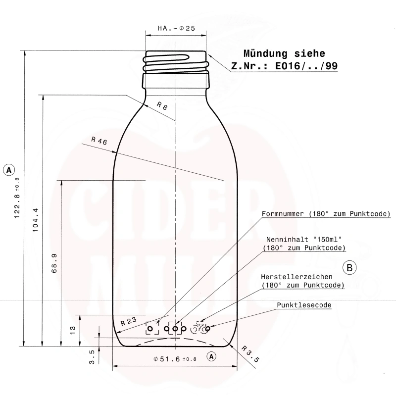 Apteek-Glasflasche 150ml braun für 28-mm-Verschluss