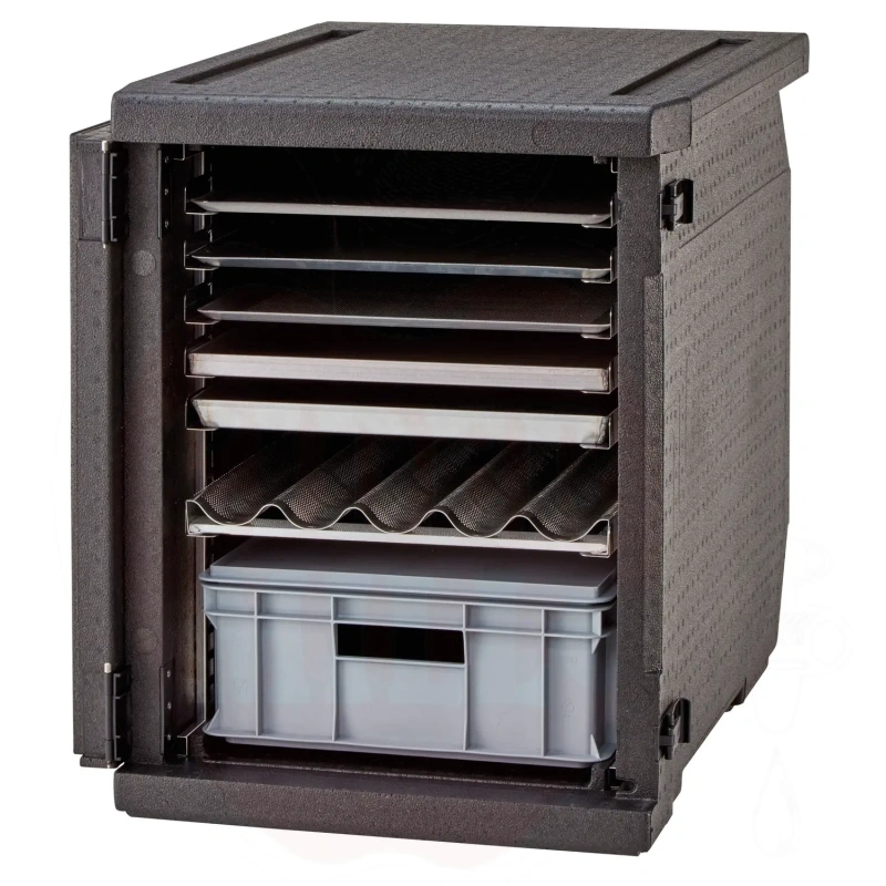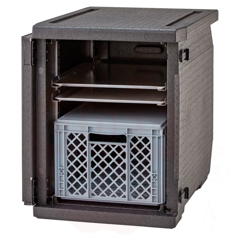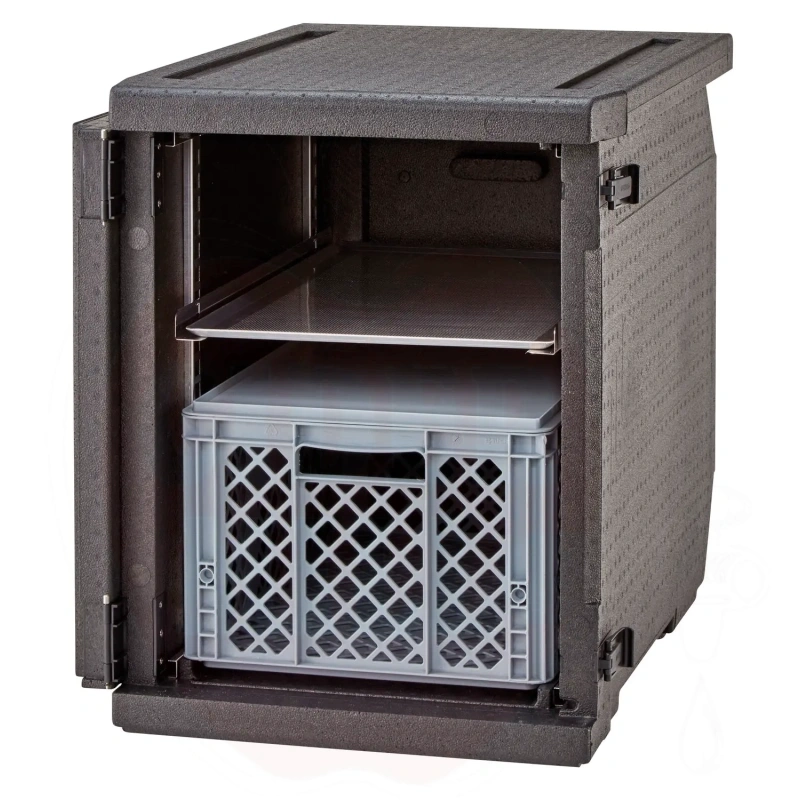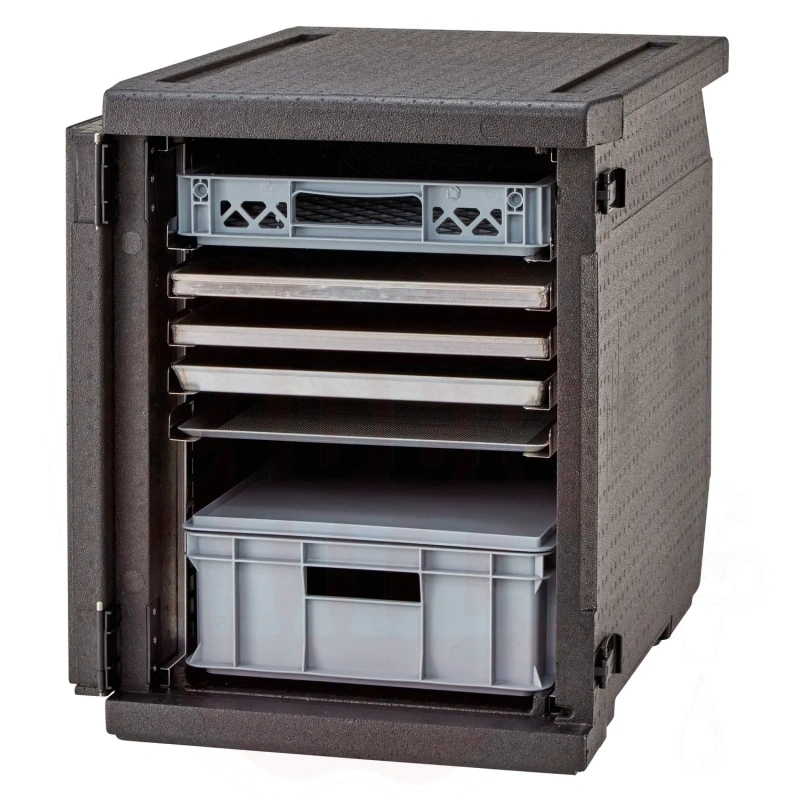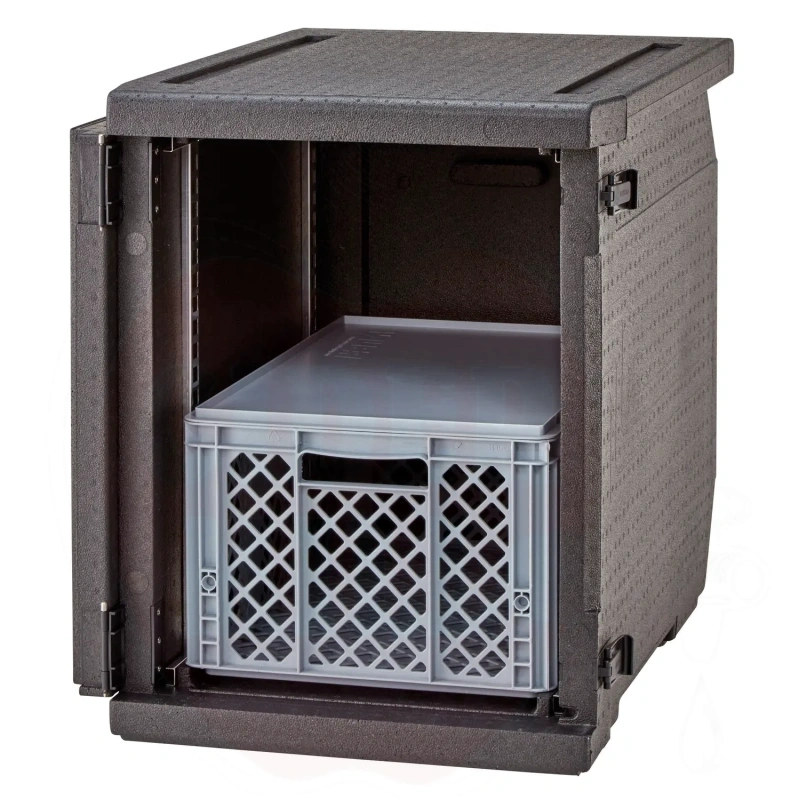Isolierter Transportbehälter 155L Cam GoBox Frontlader für 600x400mm Behälter mit verstellbaren Führungen Cambro schwarz 770x540x(H)687mm
