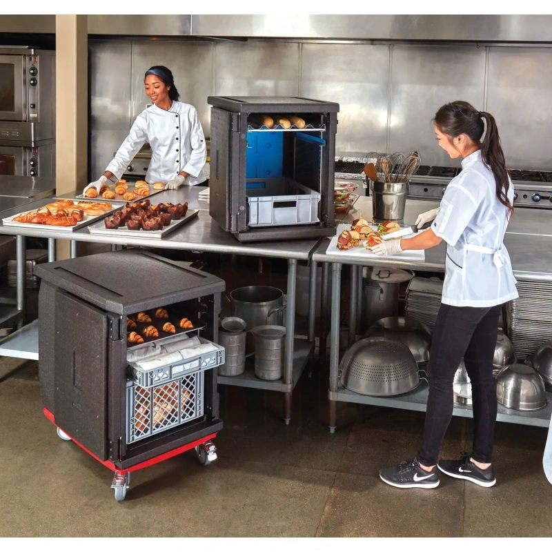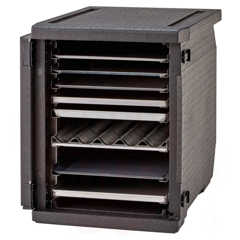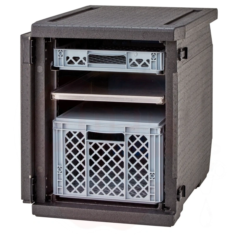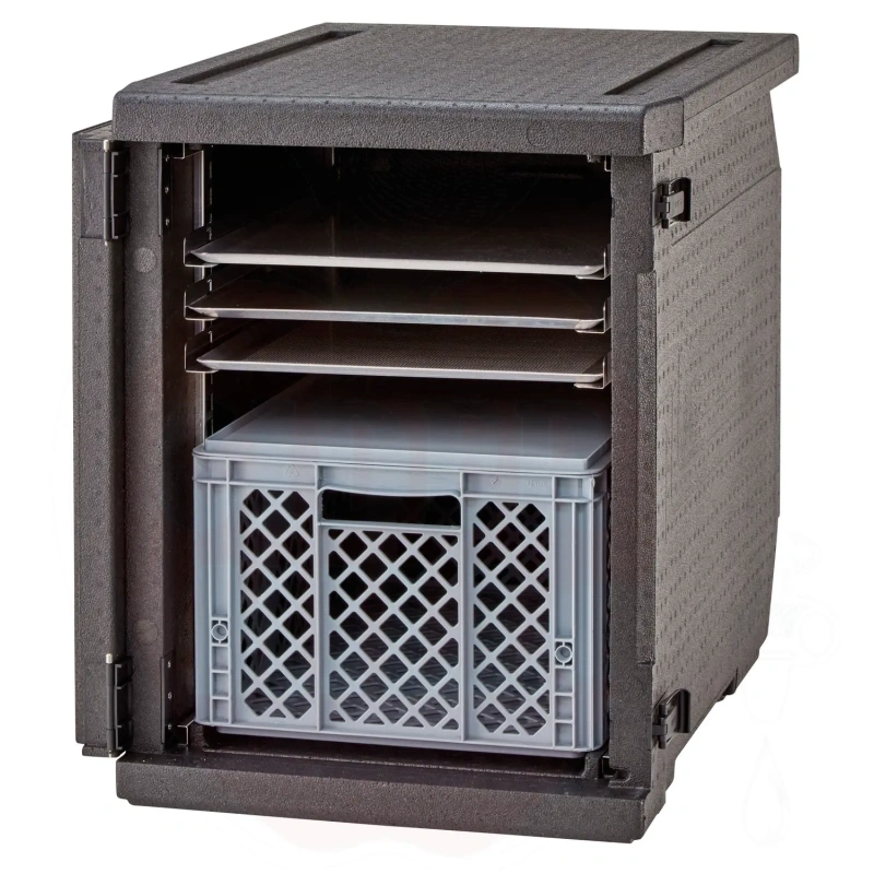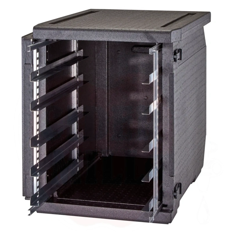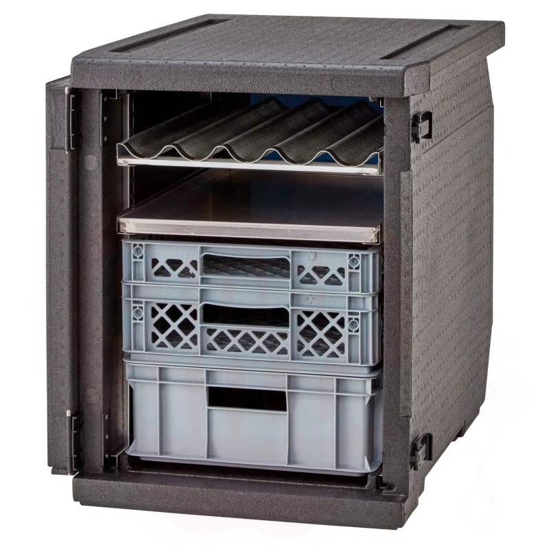 Isolierter Transportbehälter 155L Cam GoBox Frontlader für 600x400mm Behälter mit verstellbaren Führungen Cambro schwarz 770x540x(H)687mm