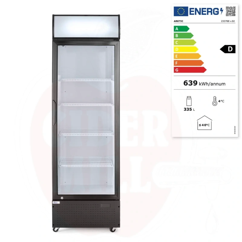 Bar-Kühlschrank 254L eintürig mit beleuchteter Rückwand Arktic schwarz 220-240V/250W 578x605x(H)1980mm