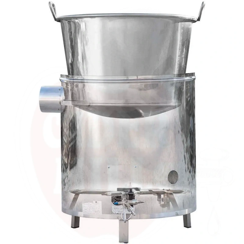 Properties: Even heat distribution due to oil bath double chamber. Made entirely of AISI 304 stainless steel. Includes lid, pot, oil bath chamber, burner, and gas burner.