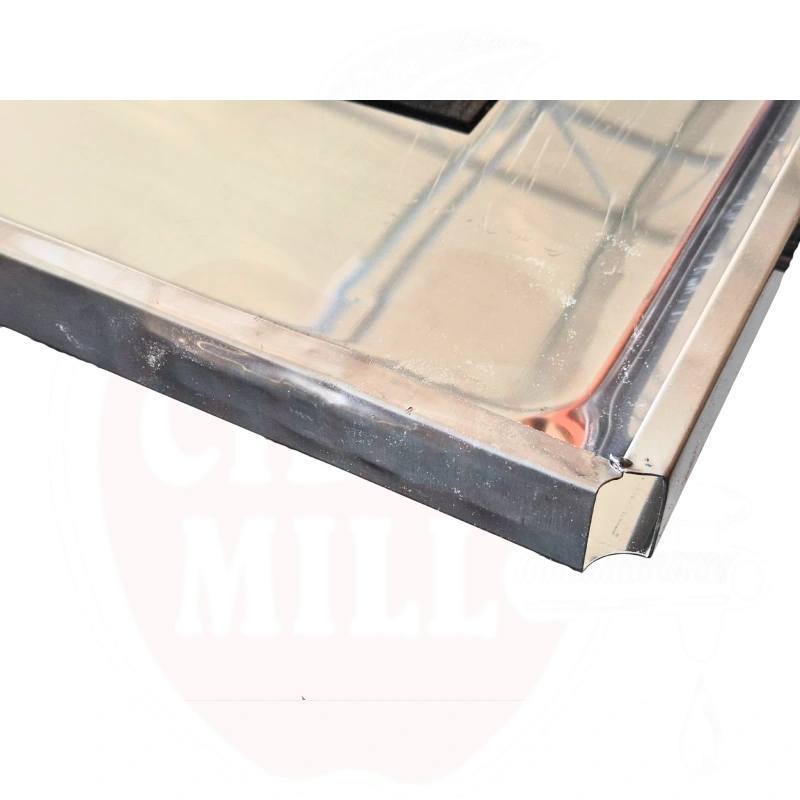 The shelf construction is of industrial strength and the presence of corner guards ensures safe use in various work environments. Stainless steel allows the shelf to be used in humid rooms and ensures a long service life.