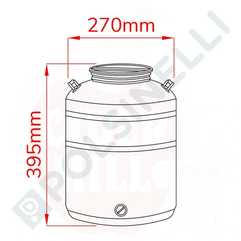 Technical data: Capacity: 20L. Weight: 2.4kg. Height: 350mm. Bottom diameter: 280mm. Opening diameter: 130mm. Tap predisposition: 1/2". Faucet mounting must be done with teflon. No need for counter nut and seal.