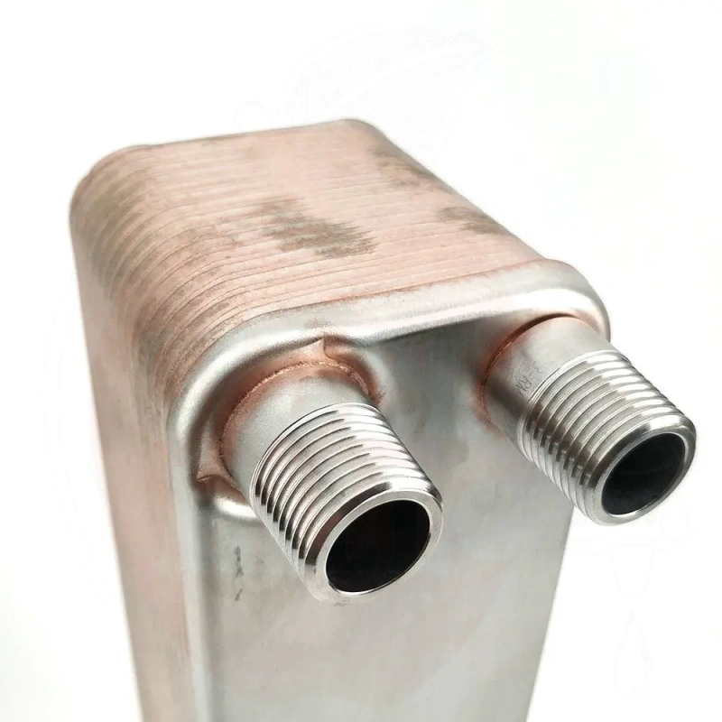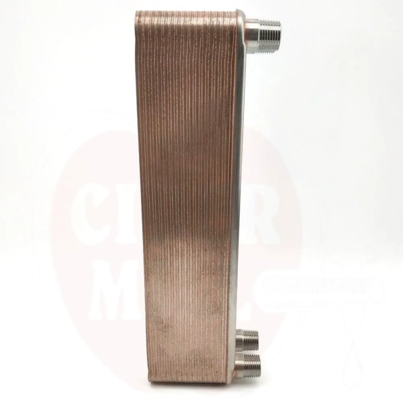 Features: Constructed from high-quality stainless steel and brazed with pure copper. Features 30 rippled plates that create increased surface area for superior heat transfer. Equipped with male 1/2" BSP threaded connections for versatile fitting compatibility. Fully polished finish.