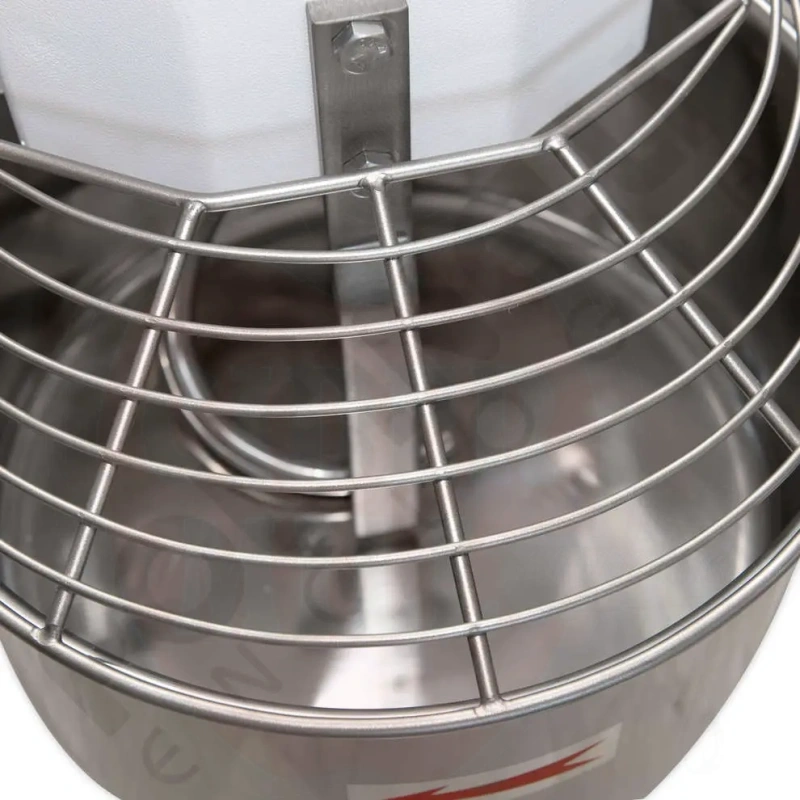 Properties: Sturdy steel frame minimizes vibration, spiral design prevents dough overheating. Stainless steel bowl, spiral, central shaft, and protection cover.