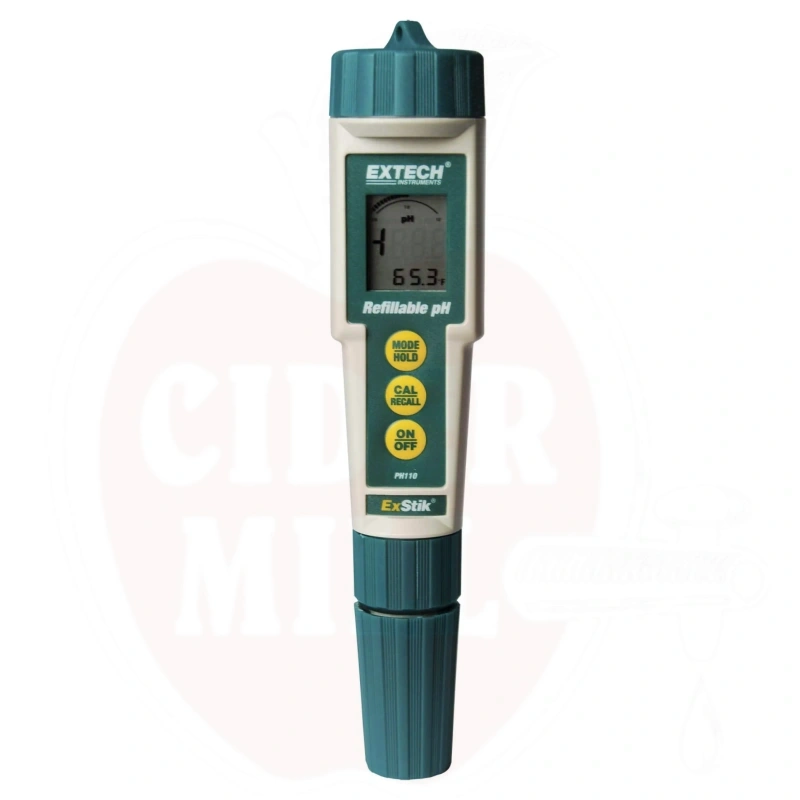 - Digital pH and temperature display with stabilization indicator