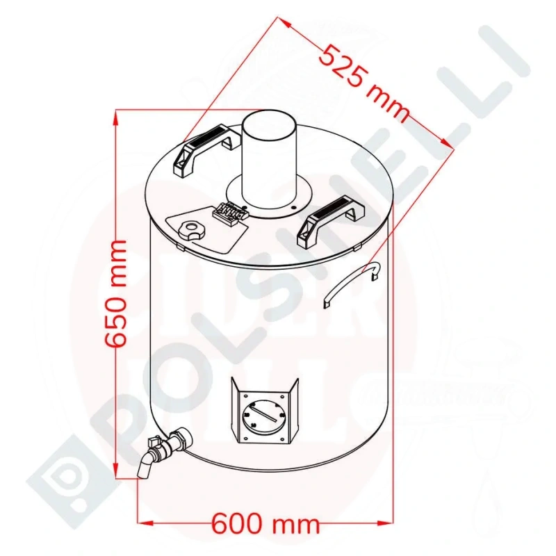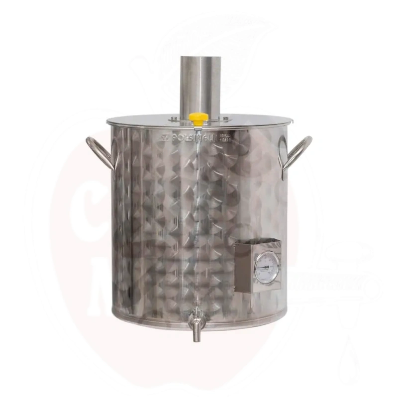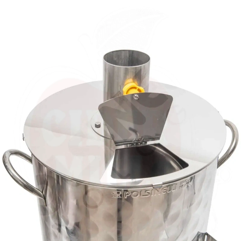 Properties: Manufactured from high quality stainless steel AISI 304 with a robust high thickness lid (20/10mm) and a matching inspection plate for ease of ingredient addition. Equipped with a 1" tap for convenient liquid transfer and a 100mm diameter smoke outlet for easy external tube connection. The pot is built with high thickness bottom (15/10mm) and sides (10/10mm) to optimize heat retention, even without insulation. Not suitable for induction heating.