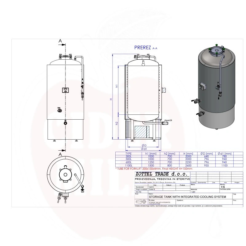 Pressure tank 1100L with cooling compressor stainless