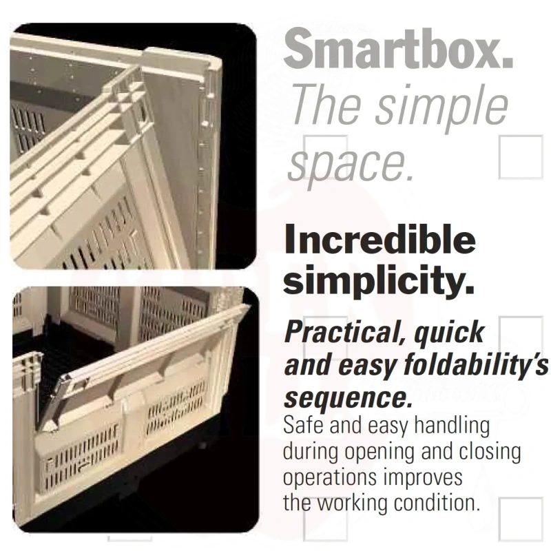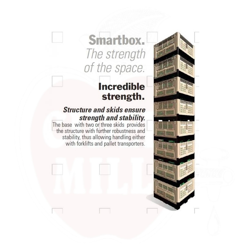 Universaalne transportkast on valmistatud kõrgkvaliteetsest toiduainetööstuse nõuetele vastavast HD-PE plastist. Kasti praktiline kokkupandav disain võimaldab ruumisäästlikku ladustamist ning lihtsat transporti. Tänu tugevale konstruktsioonile sobib kast nii tööstuslikuks kui ka põllumajanduslikuks kasutamiseks.