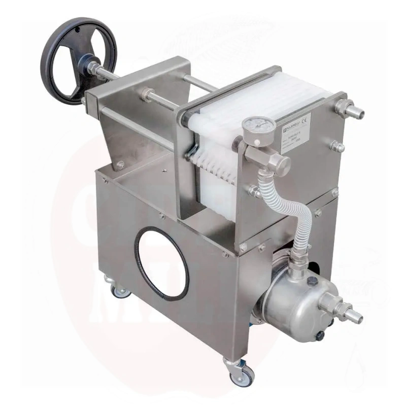 Omadused: Valmistatud AISI 304 roostevabast terasest, 11 toiduklassi Moplen filterplaati ja 10 filterlehte (20×20 cm). Komplektis tsentrrifugaalpump roostevabast terasest (0,5 hj), vooluregulaatorklapp rõhumõõturiga ning mobiilne käru 4 rattaga (2 piduritega).