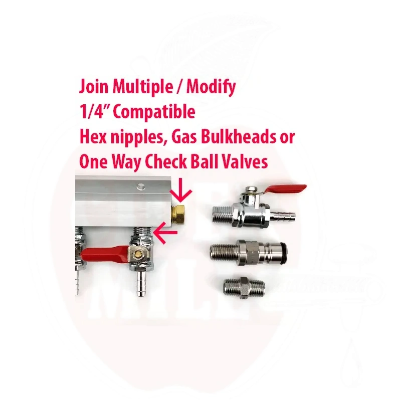 Omadused: Nimirõhk kuni 100 psi, sisaldab 4 gaasiliini väljundit kuulkraanidega, mis kruvitakse alumiiniumprofiili 1/4 tolli keermega. See on lihtne ja mugav viis ühe gaasiliini jagamiseks mitmeks gaasiliiniks.