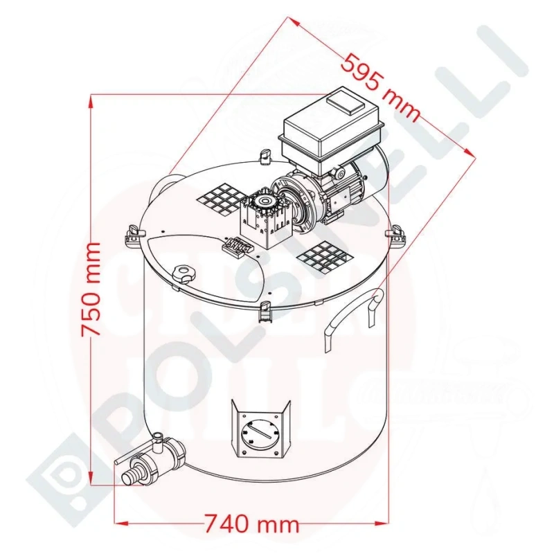 Omadused: AISI 304 roostevaba terasest valmistatud katel on varustatud tugevdatud paksu kaanega, millel on auruavad ja konksud, ergonoomilised sangad, DIN32 roostevaba terase kuulkraan ning analoogtermomeeter täpse temperatuuri lugemiseks. Hammasratasmotor inverteriga võimaldab segaja kiirust 6 kuni 42 p/min, suuna muutmise ja digitaalse kiiruse näiduga täieliku kontrolli saavutamiseks.