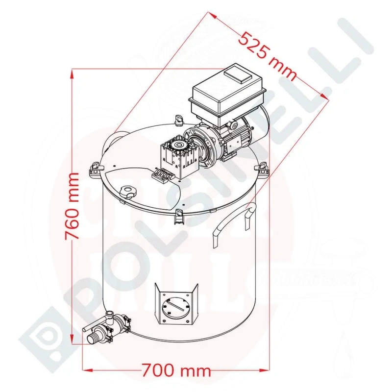 Tehnilised andmed: Maht: 75L. Materjal: AISI 304. Võimsus: 0,18kW. Mootor: 220V ühefaasiline inverteriga. Siseläbimõõt: 455mm. Kõrgus: 495mm. Seina paksus: 1mm. Põhja paksus: 1,5mm.