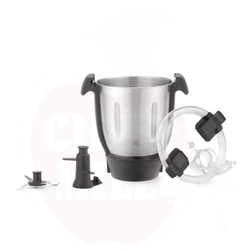 Kasutamiseks koos HENDIChef toiduprotsessoriga. Sisaldab: - AISI 304 4,5L roostevabast terasest kauss (3L kasutatav korpus) koos sisemise kütteelemendiga põhjas. - Läbipaistev kuumtöödeldud kate on valmistatud polükarbonaadist. - AISI 420 massiivne 4-kandiline roostevabast terasest tera. - Klaaskiududega tugevdatud polüamiidist segisti. MÄRKUS: Komplekt ühildub ainult HENDIChef multifunktsionaalse seadmega (221761).