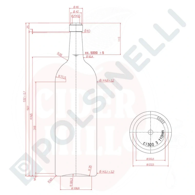 - Pudeli läbimõõt: 142,5 mm