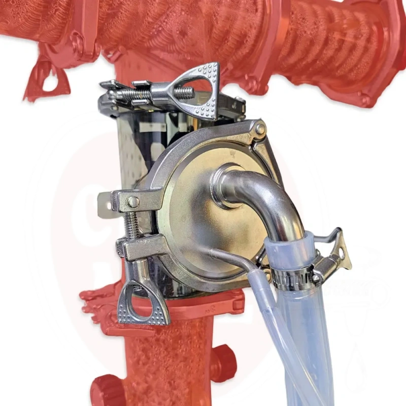 Omadused: Ülemine 20mm voolikuotsik on mõeldud auru juhtimiseks, alumine osa vedeliku juhtimiseks, mis tuleb lehtrilt alla kogujasse.
