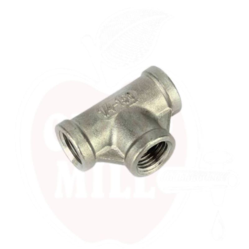 Kasutamine: Roostevaba terase T-liitmik, mis on mõeldud professionaalseks kasutamiseks joogitootmises ja toiduainetööstuses, kus on vaja usaldusväärseid sisekeermega ühendusi.