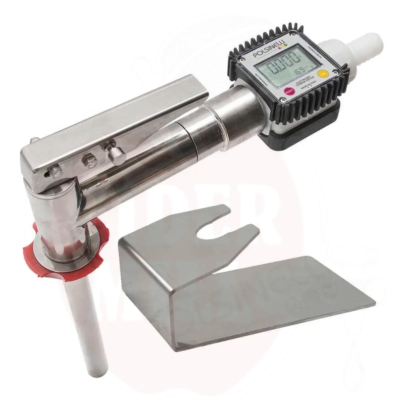 Professionaalne täitmispüstol vooluhulgamõõtjaga toiduvedelike (nagu õlu, vein ja piim) mugavaks üleviimiseks. Loodud suurte tehaste ja väikeettevõtete vajadusteks, püstol on varustatud praktilise loendajaga, mis võimaldab valamisel liitreid hõlpsalt jälgida. Toode koosneb ekraanist ja roostevabast terasest püstoli kraanist, mis on kerge, kasutus- ja kulumiskindel, kergesti puhastatav ning säilitab vedelike organoleptilised omadused.