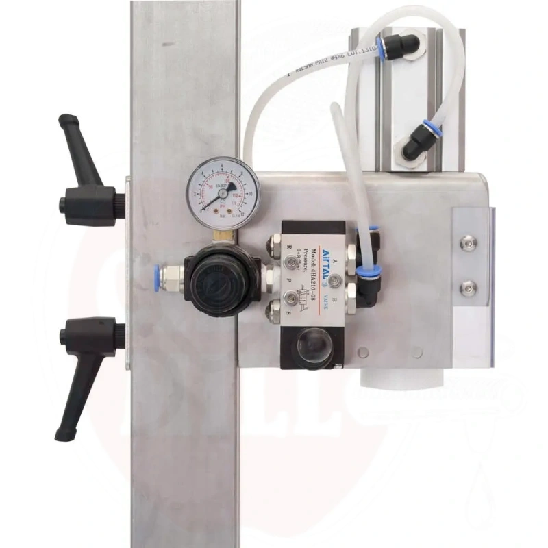 Omadused: Valmistatud AISI 304 roostevabast terasest. Kiire kõrguse reguleerimissüsteem ja pneumaatilised väntventiilid lihtsaks kasutamiseks. Tootlikkus umbes 400 pudelit tunnis, toetab töörõhku 4 kuni 8 baari. Käsitsi ja suruõhusüsteemi toide. Valikuliselt kohandatud PET-konteineritele.