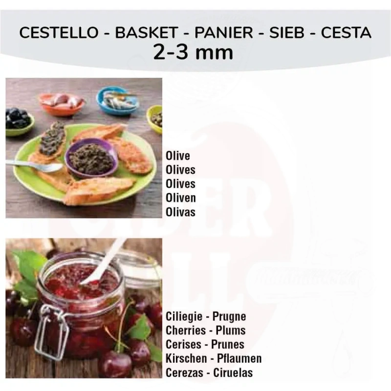 Kasutamine: Roostevaba terase sõelkorv 2mm aukudega Robot Coupe C120 sõelale.