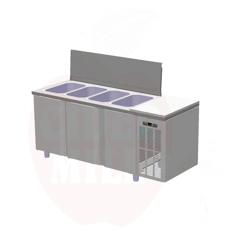 Roostevaba töötasapind integreeritud külmkapiga salatibaari jaoks