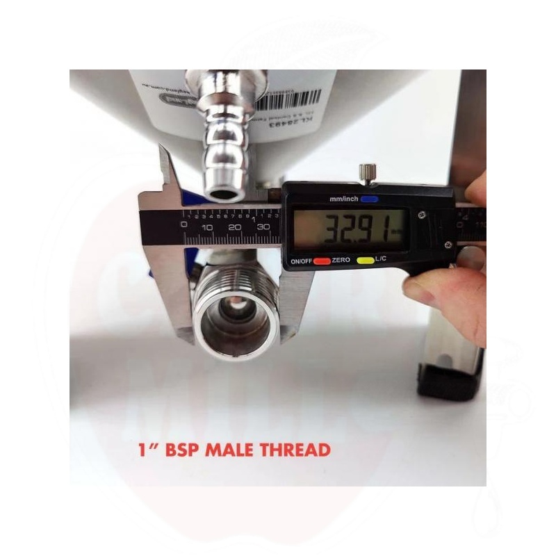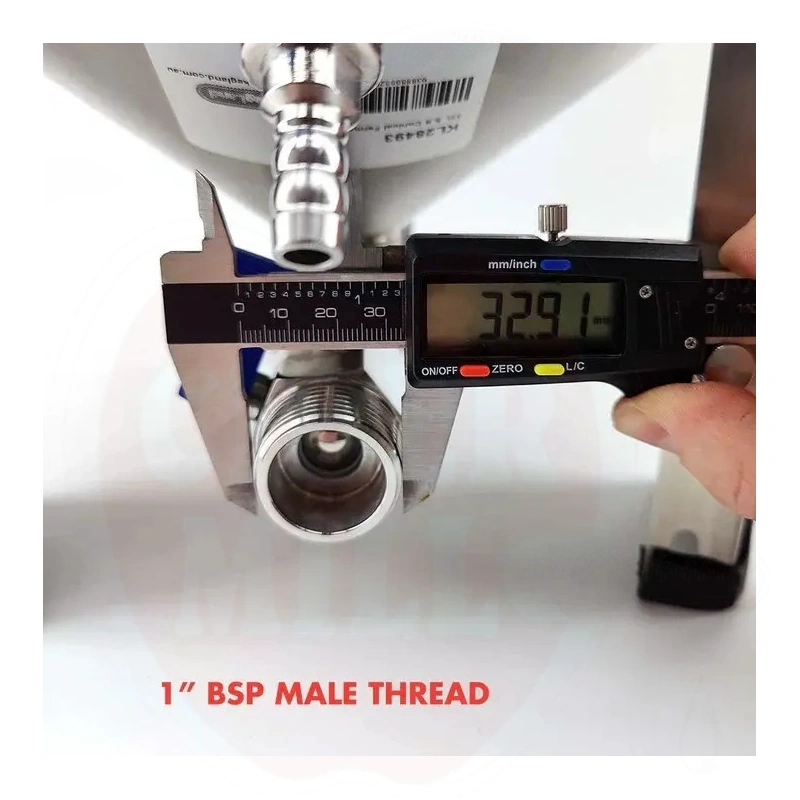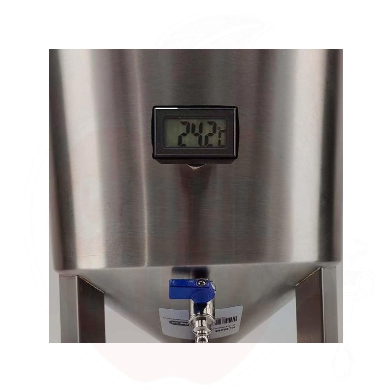 - Omadused: Kooniline/kuplikujuline põhi, pöörlev tõmbekäsi, 1-tolline nurga all asuv tühjendusklapp, termotasku digitaalse termomeetriga