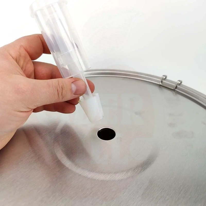 - Enne esimest kasutuskorda kasutage 1 kuni 2 liitrit vett 1,5 ml kuni 3,0 ml StellarSan'iga ja raputage seda, et see muutuks vahuseks ja puudutaks kõiki sisepindu, pöörlevat tõmbekätt, ülemist korki ja õhulukku. Nüüd on see valmis esimeseks pruulimiseks! Õhulukus on hea kasutada veidi desinfitseerimisvahendit või etüül-desinfitseerimisvahendit juhuks, kui vesi muutub seisvaks ja imeb tagasi, nakatades teie pruuli