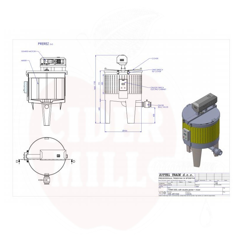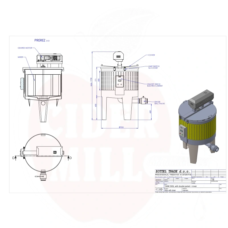 Professionaalne roostevabast terasest segumiksriga mahuti, mis sobib ideaalselt toiduainete töötlemiseks ja tootmisprotsessideks. Valmistatud kõrgekvaliteetsest AISI 304 (18/10) roostevabast terasest.
