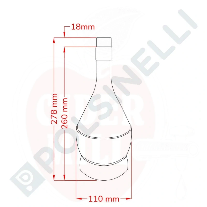 Tehnilised andmed: Maht: 750ml (cL 75); Kõrgus: 260mm; Pudeli läbimõõt: 110mm; Põhja läbimõõt: 99mm; Suudme siseläbimõõt: 18mm; Suudme välisläbimõõt: 29mm. Pakend: 18 tk.