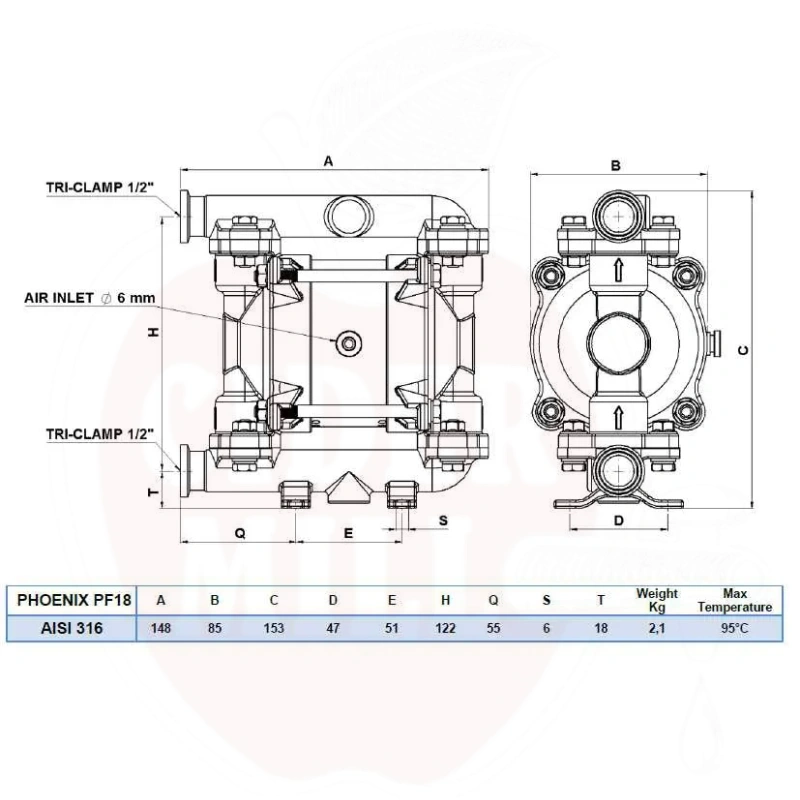 Phoenix Food 18 - Tööstuslik Suruõhupump Vedelike ja Pulbrite Jaoks