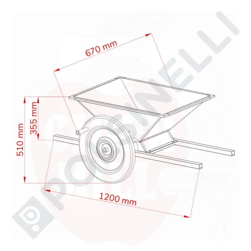 Tehnilised andmed: Lehtra mõõdud 650×470×310mm; Kaal: 19kg; Kogumõõdud: 1200×670×510mm.