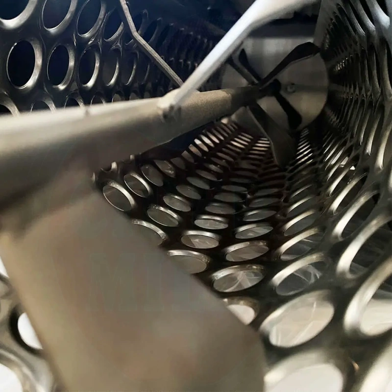 Omadused: Valmistatud täielikult roostevabast terasest vastupidavuse tagamiseks. Varustatud suure eemaldatava võrega ja kuullaagritega toetatud varreeemaldamise võlliga ummistuste minimeerimiseks. Hopper 850x480mm ja 1HP, 220V Itaalia päritolu mootor.