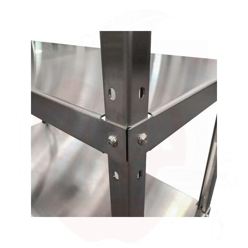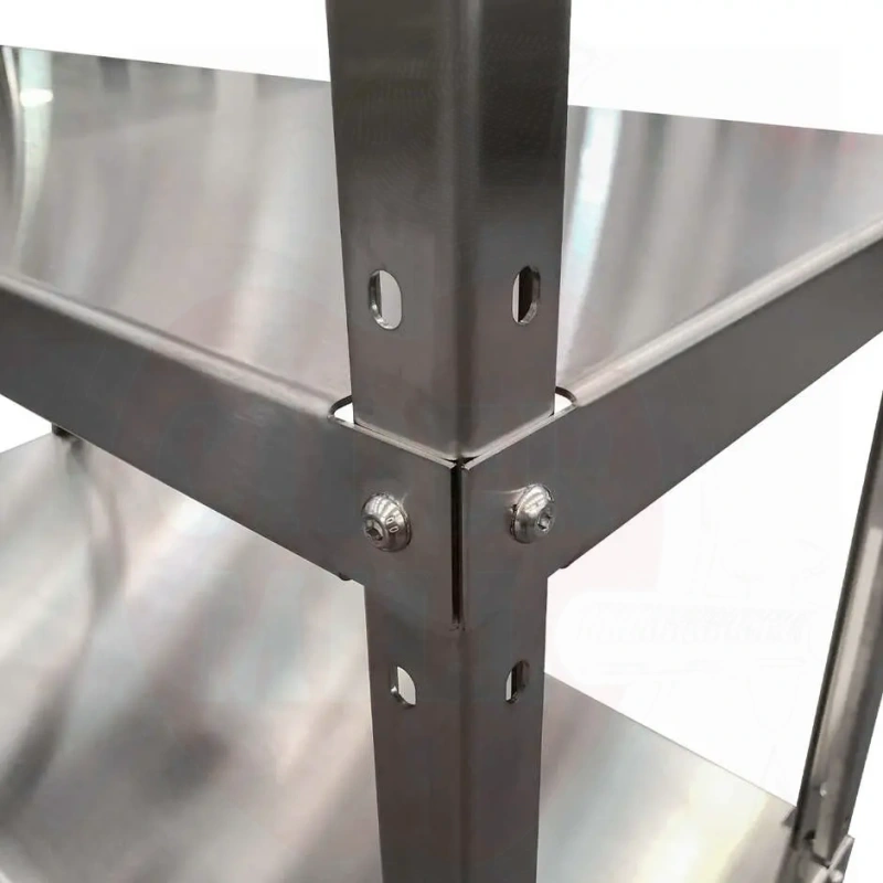 AISI 304 roostevaba teras annab sellele riiulile erakordse vastupidavuse korrosiooni, kemikaalide ja kulumise suhtes, võimaldades lihtsat hooldust ja kiiret puhastamist. See sobib eriti hästi keskkondadesse, kus on vaja kõrgeid hügieeninõudeid, nagu restoranid, toidulaborid, marjakasvatused, farmaatsiatööstused ja tervishoiuasutused. Selle minimalistlik ja funktsionaalne disain muudab selle mitmekülgseks nii koduseks kui ka äriliseks kasutuseks.