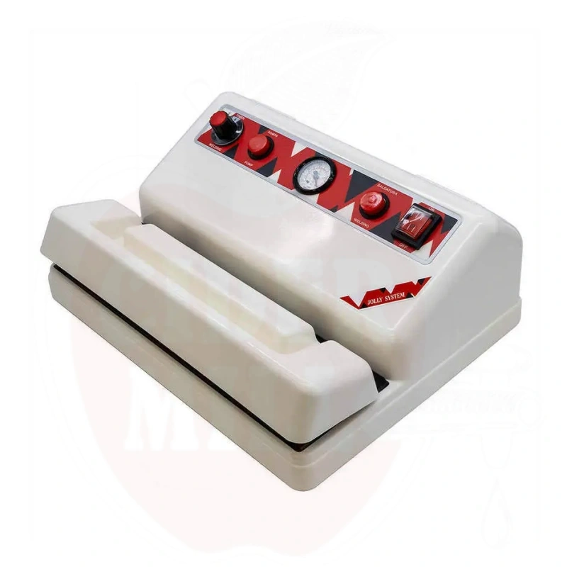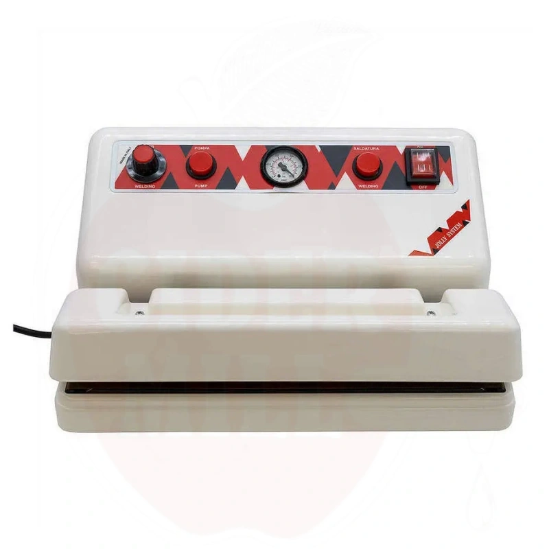 Professionaalne vaakumpakendaja Jolly on seade, mis on loodud õhu täielikuks eemaldamiseks pakendamisel ja toidu pikaajalisel säilitamisel, võimaldades maitse, aroomi, värvi ja erinevate toitumisomaduste muutumatuna püsimist. Käsitsitöötamiseks loodud, aitab pikendada mootori eluiga võimsusega 400 vatti. 33-sentimeetrine keevitusriba tagab täiusliku tihendamise kõige levinumate vaakumkottide suuruste puhul. Jolly vaakumpakendaja pakub reguleeritavat tööaega tänu taimeril, mida saab seadistada vastavalt kottide suurusele, samuti analoogset vaakummõõturit nõelaga, mis näitab operaatorile ideaalset hetke tihendamiseks. Jolly toidupakendamismasin on plastikust korpusega, üldmõõtmed 370x300 mm, kõrgus 160 mm ja kaal 5 kg.