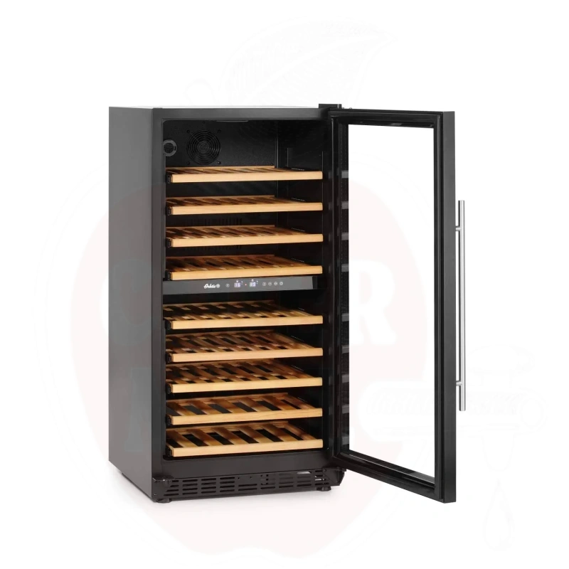 Must korpus ja ääristeta klaasuks loovad elegantse välimuse. Isesulguv lukustatav uks tagab veinide turvalise hoiustamise. Sundõhu jahutussüsteem koos automaatse sulatamisega kindlustab ühtlase temperatuuri.