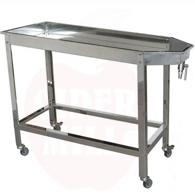 Omadused: AISI 304 roostevaba teras, perforeeritud töölaud integreeritud äravooluga, DN15 3/4" kuulkraan voolikuotsikuga Ø 20mm, mobiilne disain 4 rattaga (2 piduritega), sileapinnalised pinnad lihtsa puhastamise jaoks.
