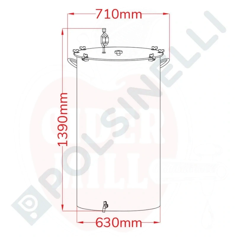 Kääritusmahuti 300L sangadega roostevaba teras