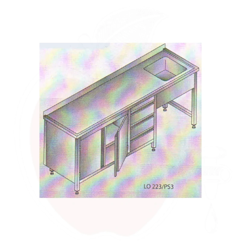 Laud 2400x600x850mm valamu paremal sahtlid ja kapp (roostevaba)
