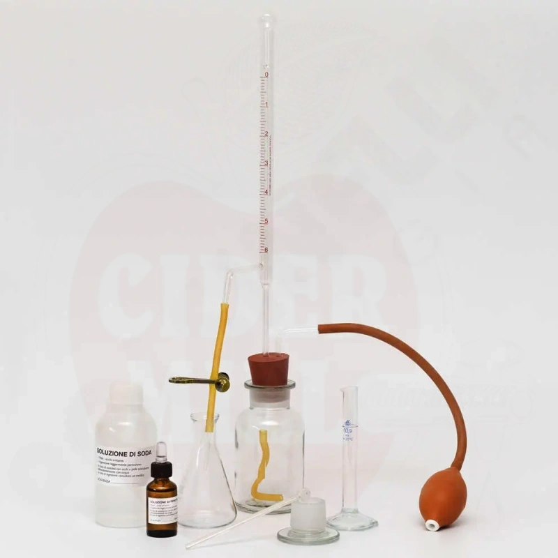 Ominaisuudet: Mittaustarkkuus ±0,1% ja resoluutio 0,1%. Sisältää kemialliset reagenssit, soodaliuokset ja fenoliftaliinin. Ohjeet mukana. Käytä petrolivasiliinia kokoonpanossa ja käsittele lasiosia varovasti.