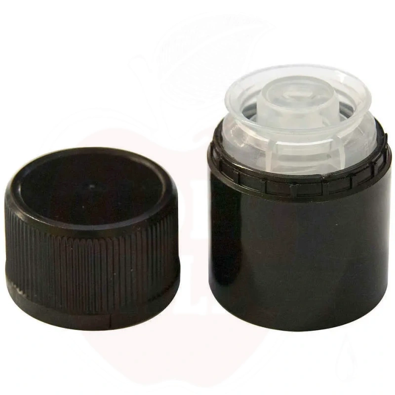 Naudojimas: Profesionalus juodas spalvos vienkartinis kamštelis kaulavaisių aliejaus buteliams, atitinkantis maitinimo paslaugų reikalavimus dėl apsaugos nuo pakartotinio užpildymo. Sistema leidžia skysčiui išbėgti, bet vidinė konstrukcija neleidžia butelio užpildyti pakartotinai.