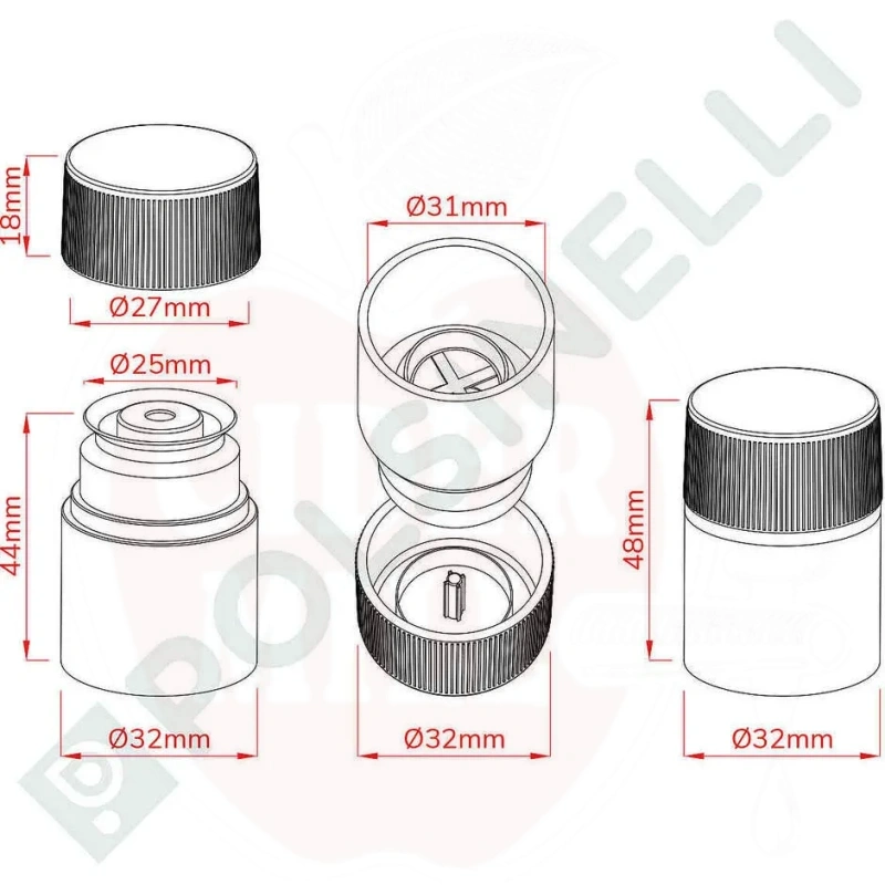 - Matmenys: ø31 x 48h mm