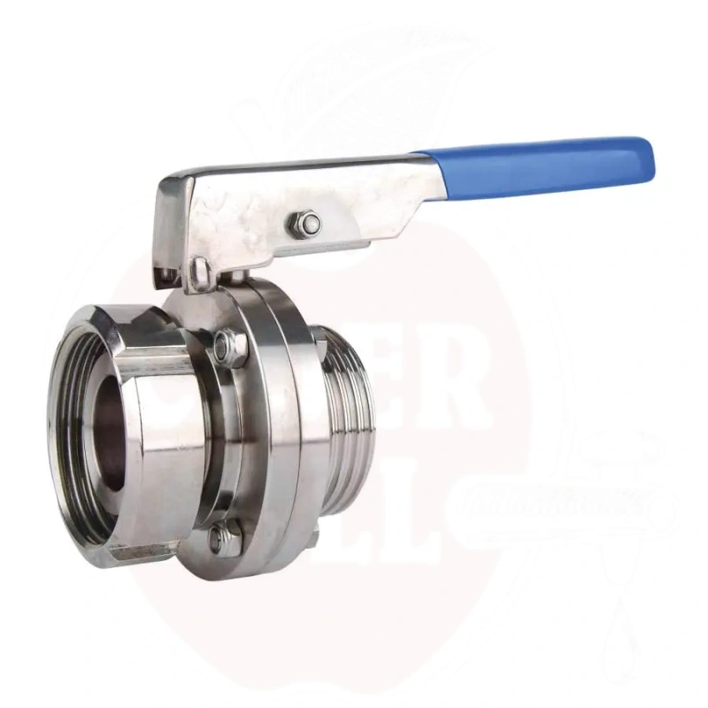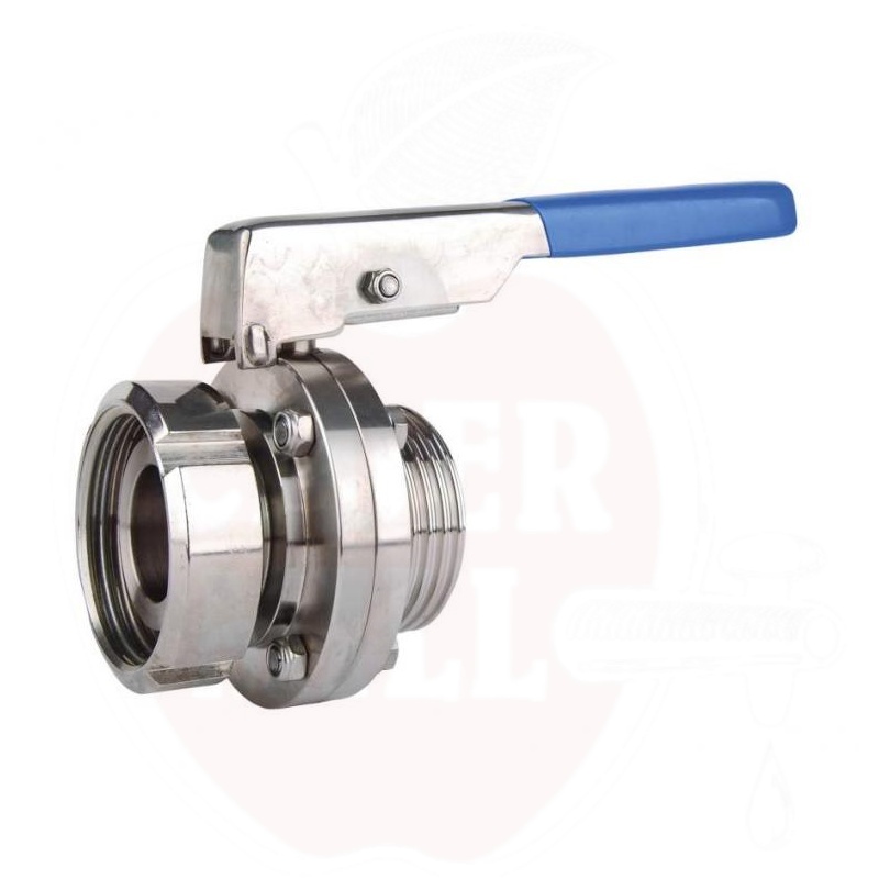 Nerūdijantis rutulinis čiaupas DIN25 su vidinio-išorinio sriegio jungtimis.