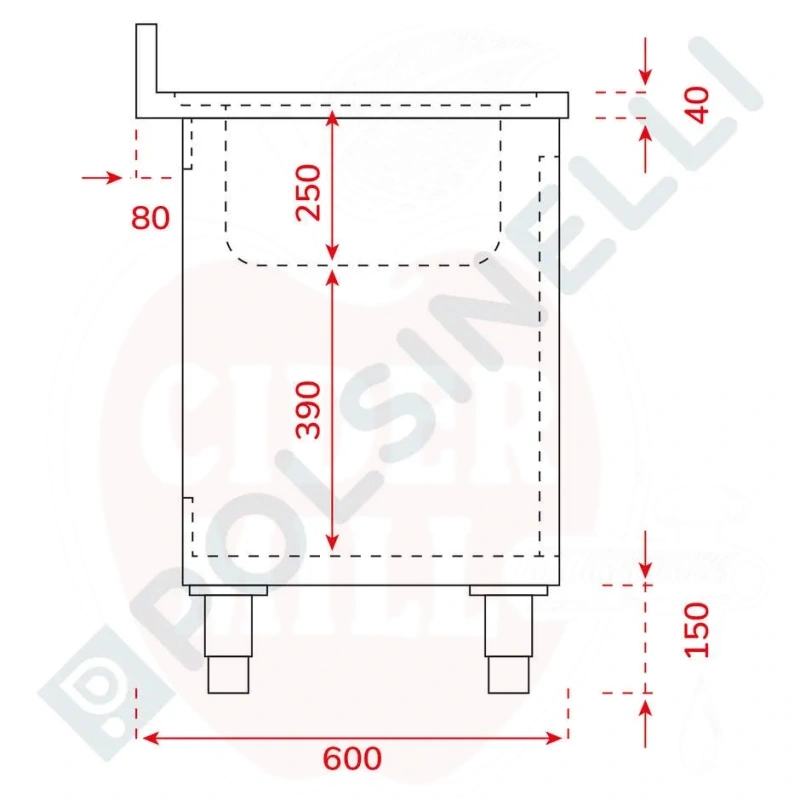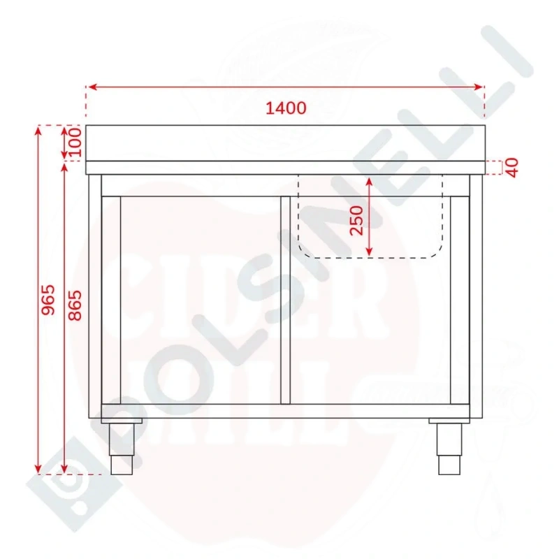 Kriauklės spintelė 1300x600mm su 2 stumdomomis durimis nerūdijantis plienas