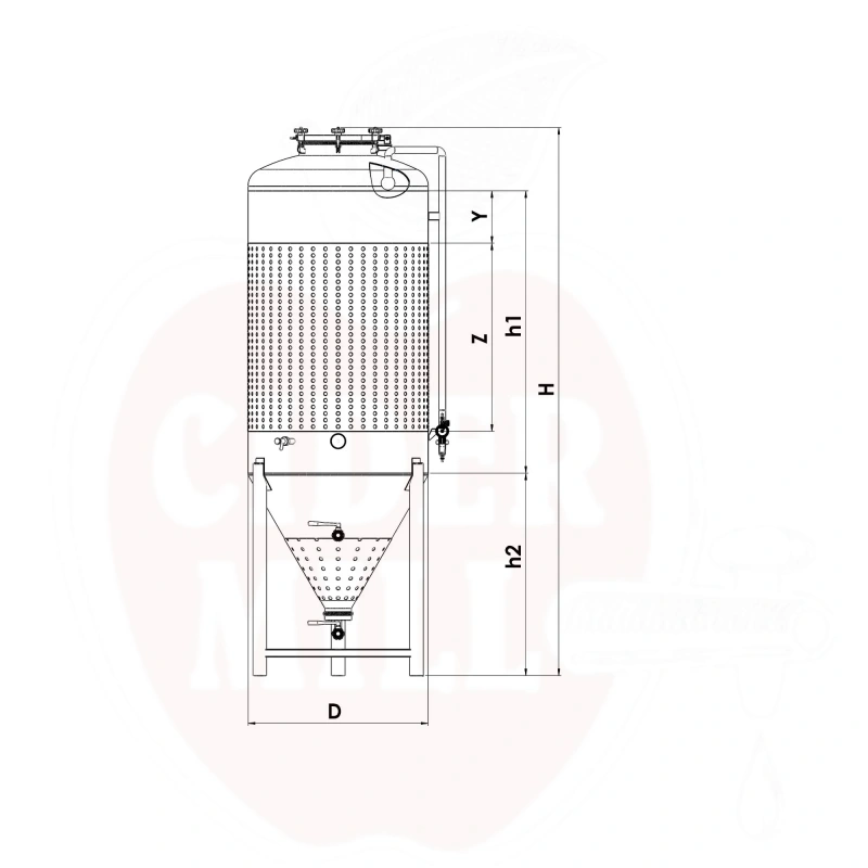 Kūgio bakas 300L su aušinimo gaubtu 60° kūgio pagrindu