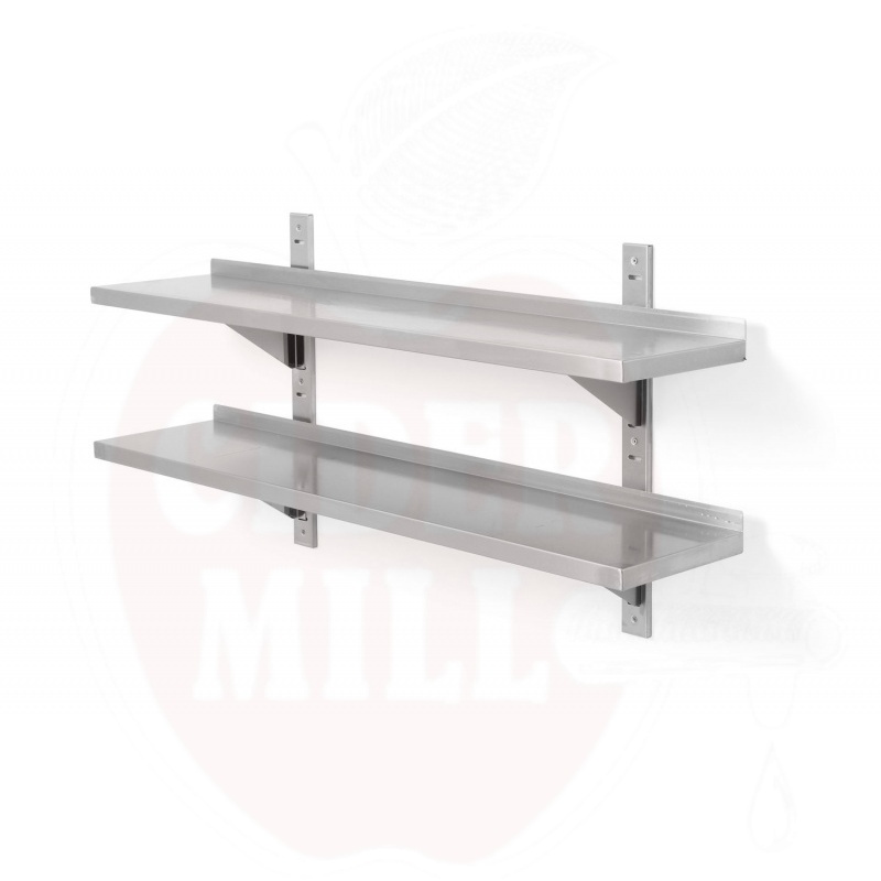 Dviguba sieninė lentyna 1200x300x(A)600mm reguliuojama su 2 laikikliais HENDI