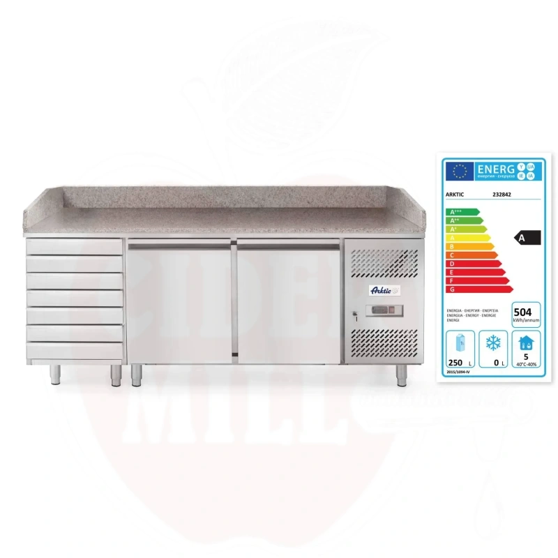 Picos šaldymo stalas 2 durų 7 stalčiai 250L Arktic su granito stalviršiu 230V/250W 2020x802x(A)1000mm
