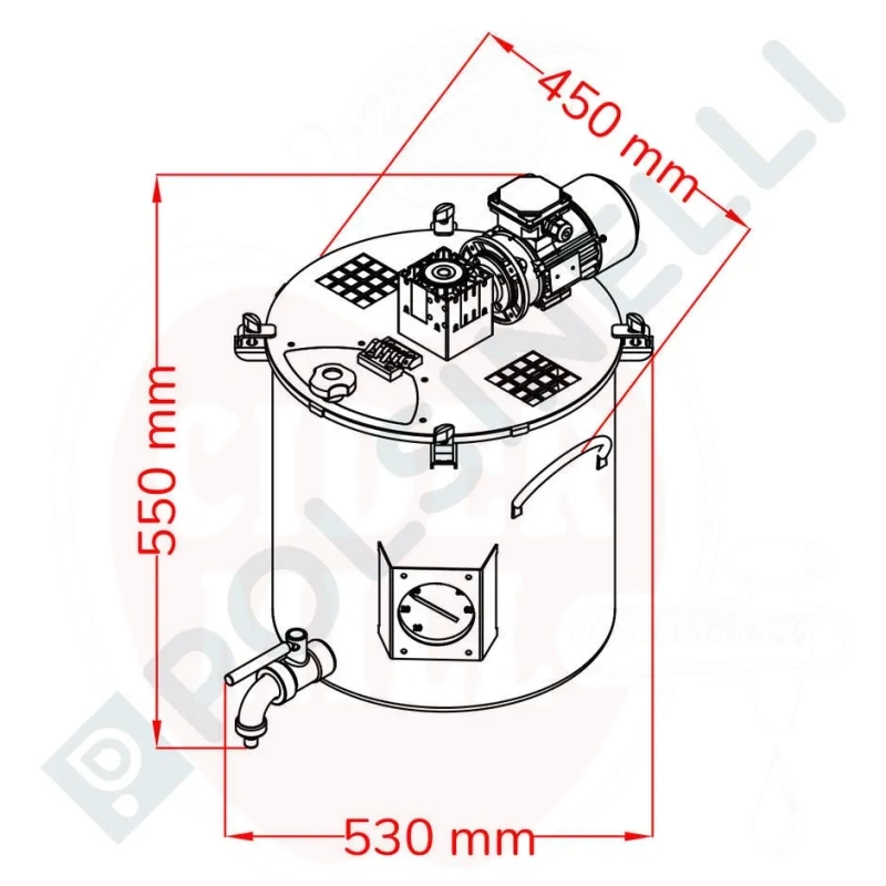 Komplektā ar pārtikas kvalitātes silikona skrāpja sloksni, kas uzklāta uz apakšējās lāpstas, lai novērstu piedegšanu un produkta karamelizāciju. Aprīkots ar 1" nerūsējošā tērauda lodveida krānu, analogu termometru ar nerūsējošā tērauda aizsardzību, augsta biezuma pastiprinātu vāku ar atverēm tvaika izvadei, reduktoru un asmeņiem. Ideāli piemērots augstas kvalitātes ievārījuma ražošanai, pateicoties profesionālam analogajam termometram, varēsiet kontrolēt temperatūru. Ražots mūsu uzņēmumā un izgatavots no augsta biezuma nerūsējošā tērauda 18/10 (AISI 304).