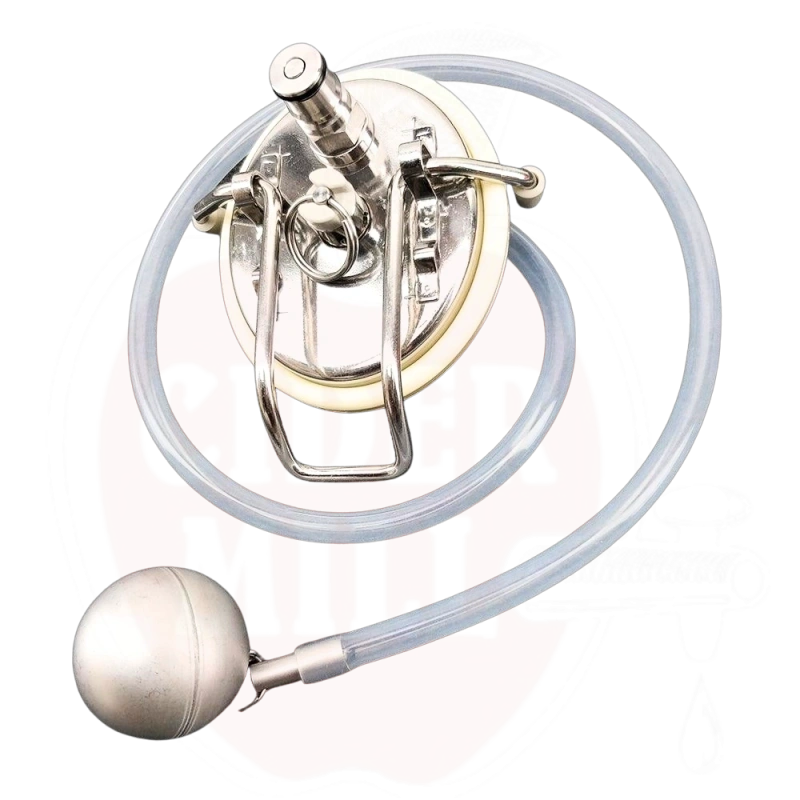 Īpašības: Saderīgs ar 19L un 9,5L Cornelius mucām. Komplektā nerūsējošā tērauda Cornelius mucas vāks ar kājiņām, pelēks 100psi spiedvārsts, silikona mucas vāka O-gredzens, šķidruma Cornelius sienas savienojums ar vārstu/atsperi un 8mm uzgali, 80cm silikona šļūtene un nerūsējošā tērauda pludiņš. Piezīme: Šajā vākā nav iekšējā āķa apiņu bumbu vai apiņu caurules pievienošanai.