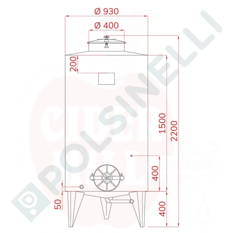 Tvertne 1000L Ø930 ar konisko dibenu un Ø300 lūku nerūsējošais tērauds
